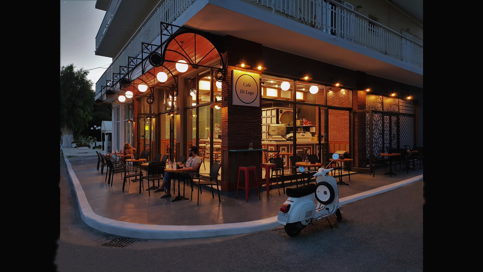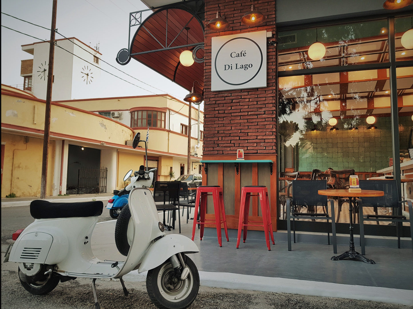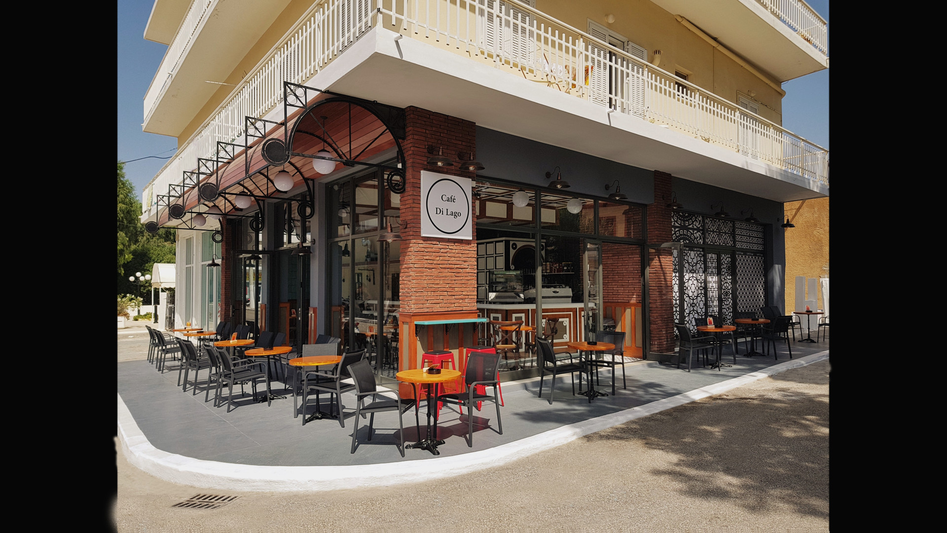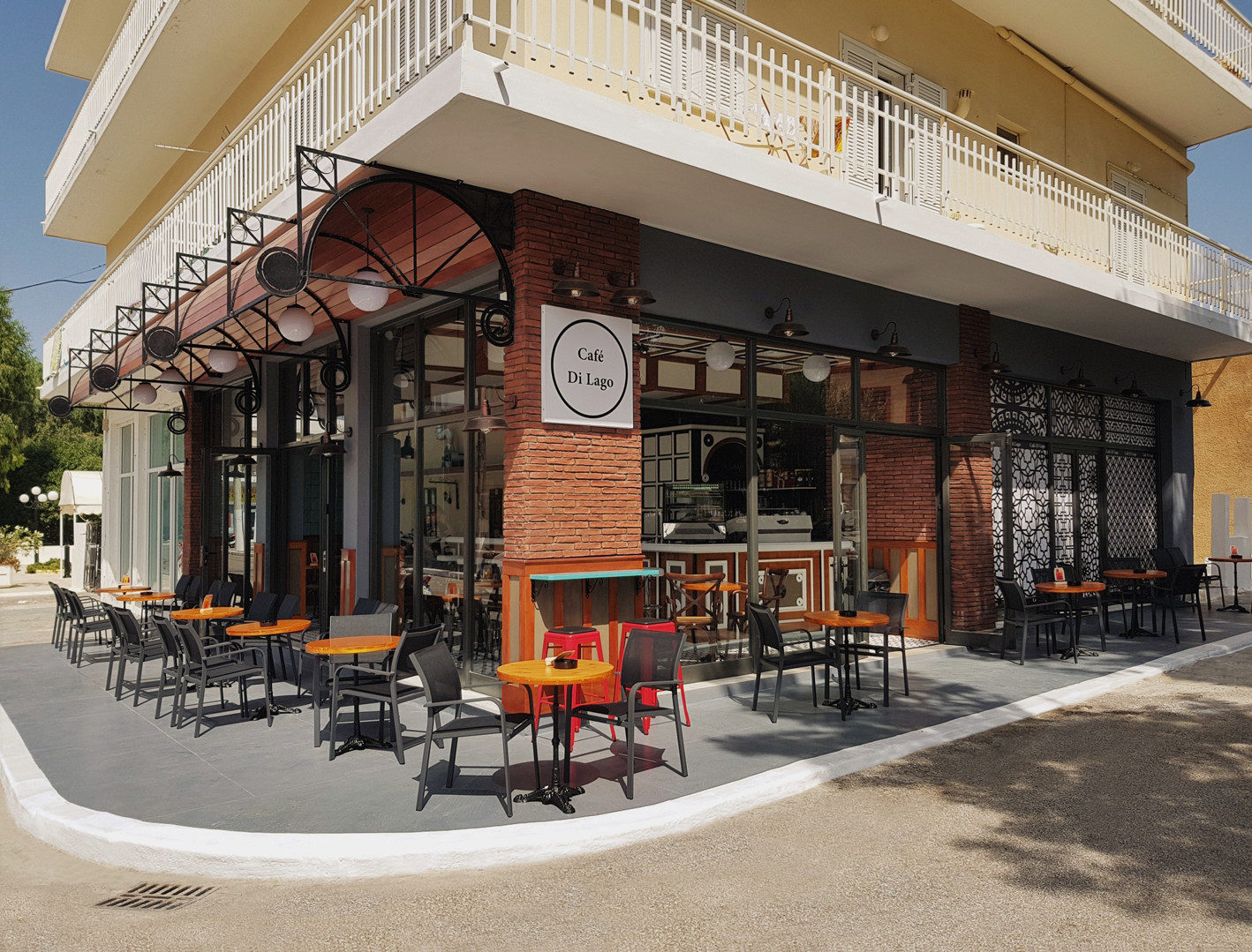 Όταν βρέθηκα για πρώτη φορά εκεί καλούμενος να δημιουργήσω το χώρο του Café Di Lago βρέθηκα να φαντάζομαι πως θα ήταν αντίστοιχα ένα καφέ της τάξεως των ιταλικών κτιρίων, εκείνη την εποχή. Ακόμα και ο τίτλος του μαγαζιού ακολουθεί την ίδια ακριβώς φιλοσοφία.