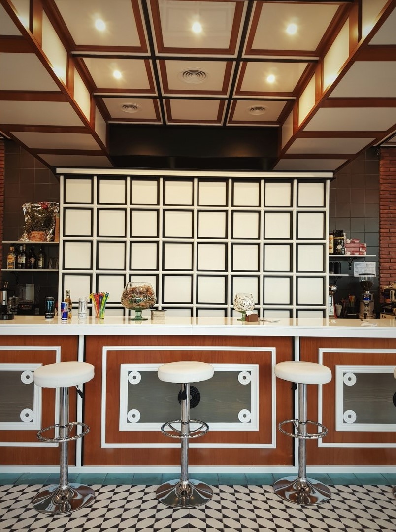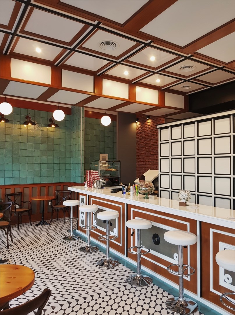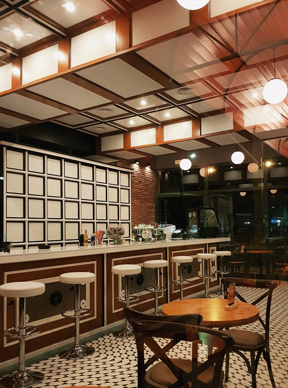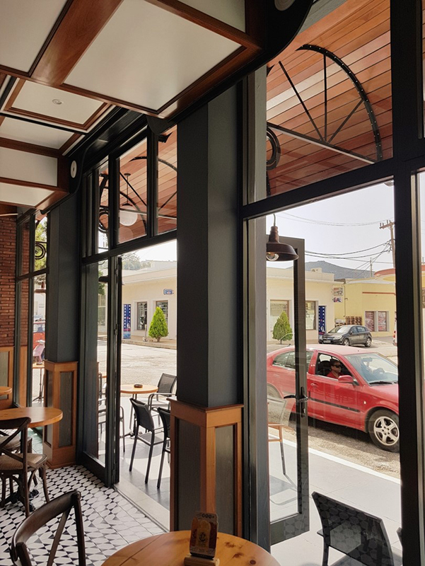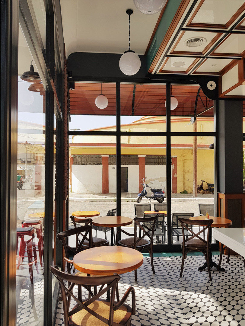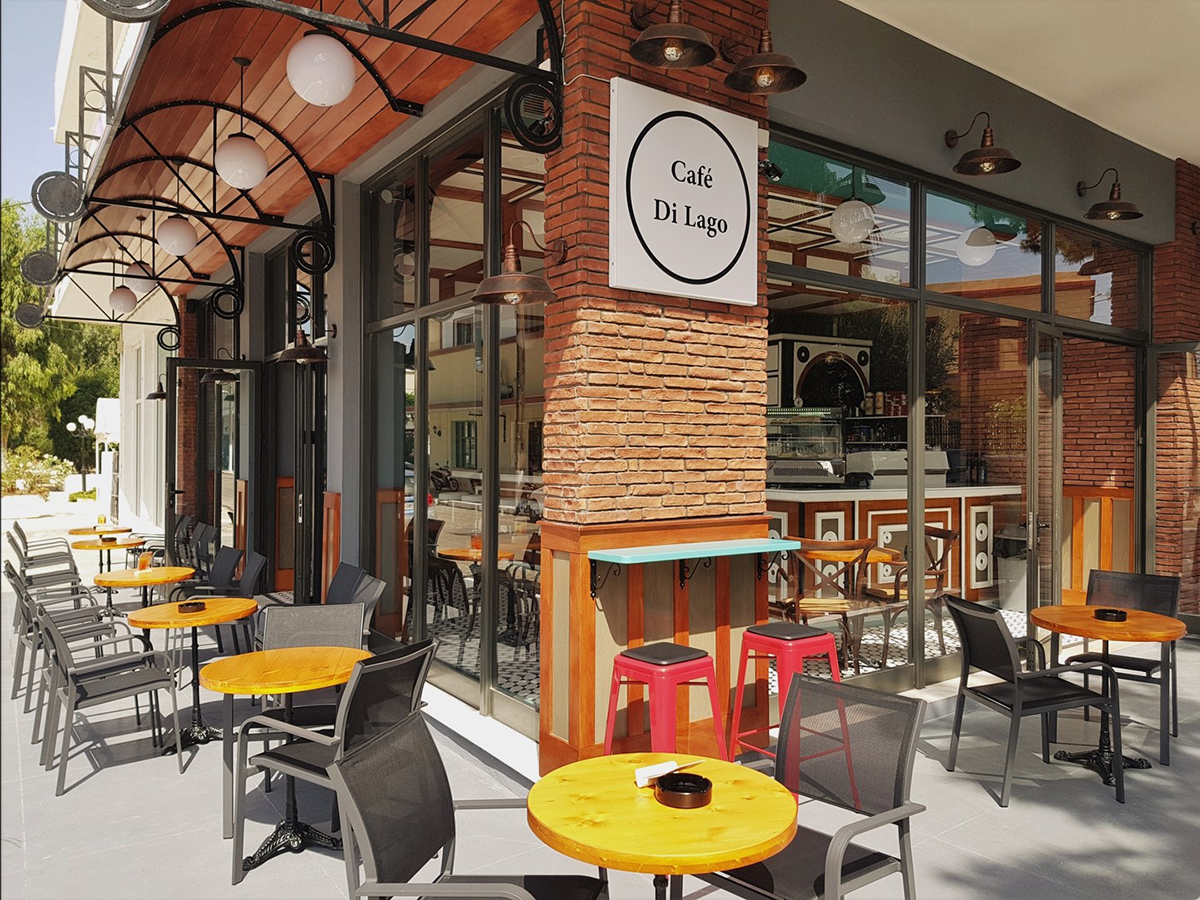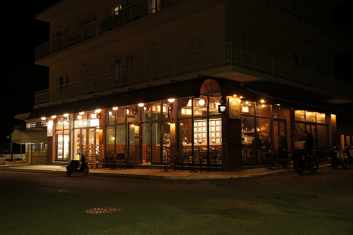 Όταν βρέθηκα για πρώτη φορά εκεί καλούμενος να δημιουργήσω το χώρο του Café Di Lago βρέθηκα να φαντάζομαι πως θα ήταν αντίστοιχα ένα καφέ της τάξεως των ιταλικών κτιρίων, εκείνη την εποχή. Ακόμα και ο τίτλος του μαγαζιού ακολουθεί την ίδια ακριβώς φιλοσοφία.