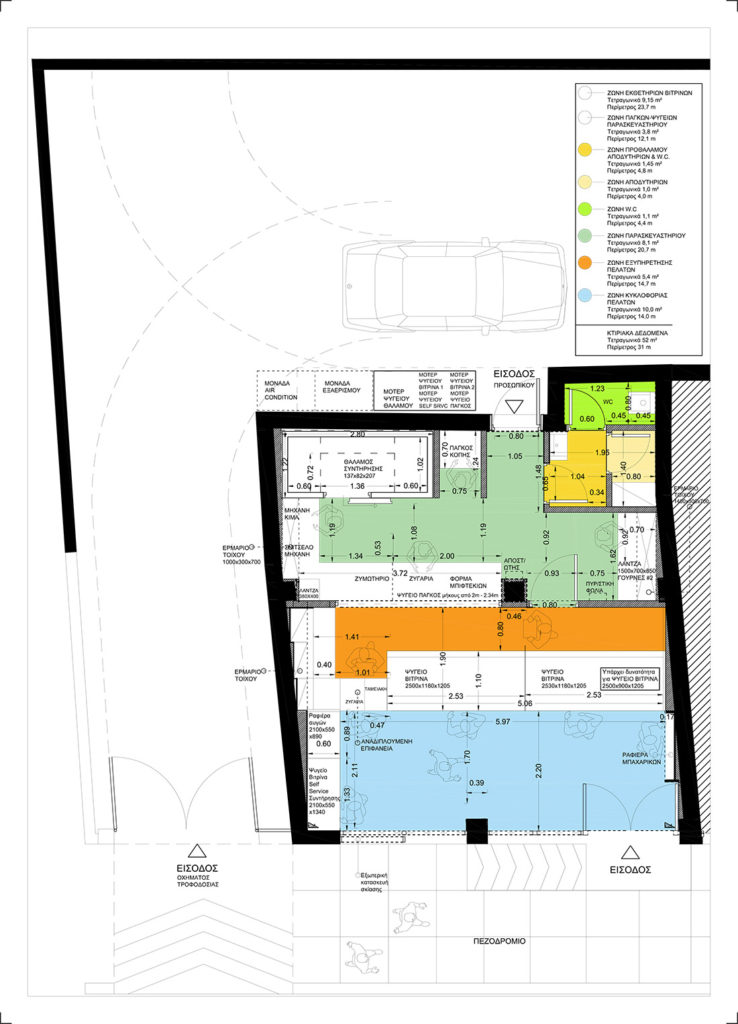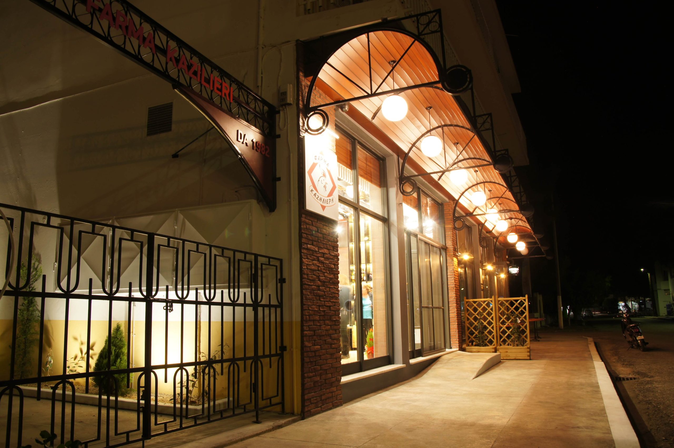 Ο χώρος του καταστήματος ‘Farma Kazilieri’ βρίσκεται στο Λακκί της Λέρου. Η ιταλική αρχιτεκτονική κυριεύει και δεσπόζει σε ολόκληρη την περιοχή του Λακκίου την πόλη που οι Ιταλοί έκτισαν κατά τη περίοδο του δευτέρου παγκοσμίου πολέμου. Μια περιοχή ιδιαίτερης ιστορικής, αρχιτεκτονικής, και πολεοδομικής σημασίας. Το ύφος του ρασιοναλισμού που χρησιμοποιήθηκε με στοιχεία νεοκλασικισμού καθώς όμως και του ‘Bauhaus’ είχε σαν στόχο τον εντυπωσιασμό και τη δημιουργία επιβλητικών κτιριακών υποδομών.