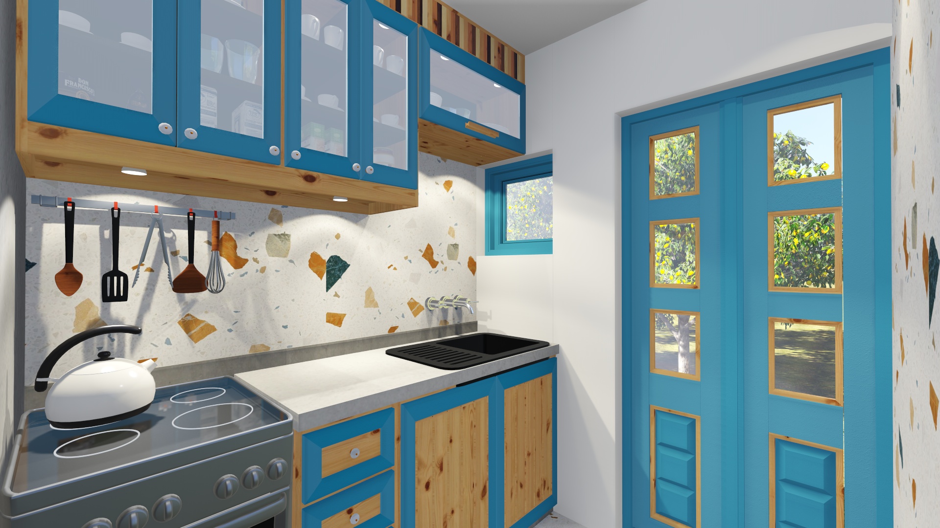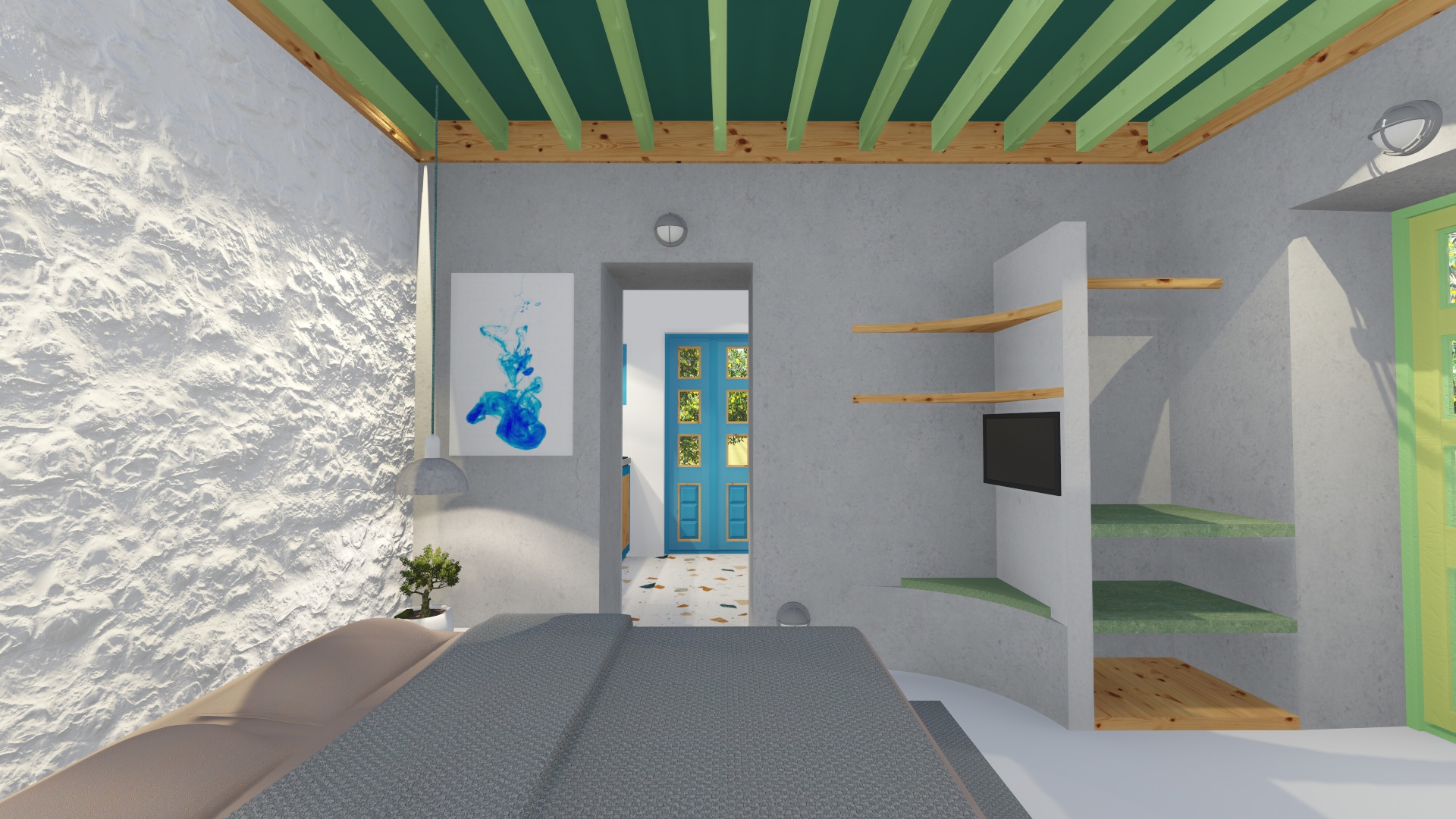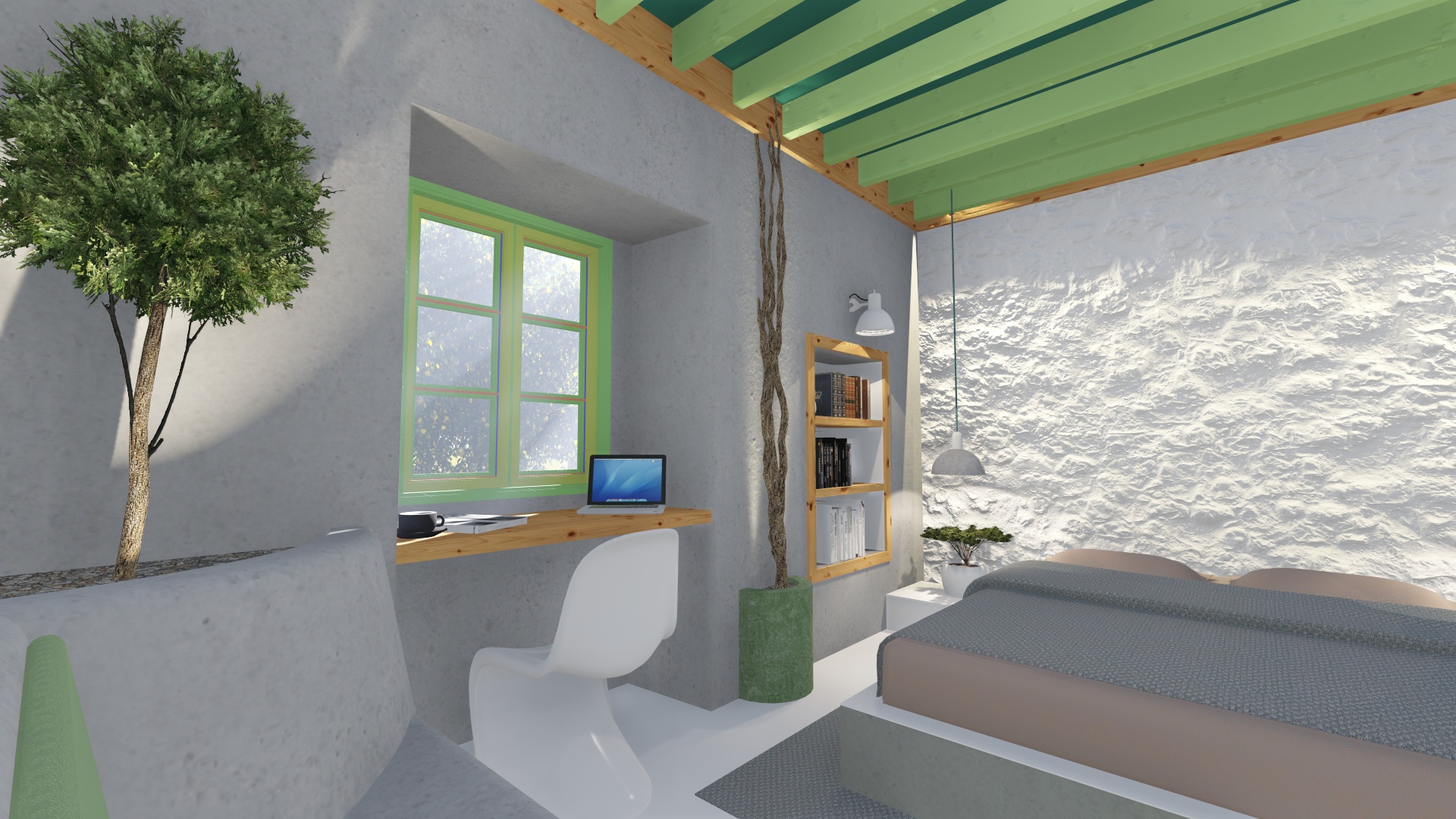 Μια μελέτη για την περιοχή των Αλίντων της Λέρου. Βρίσκεται μέσα σε ένα κτήμα γεμάτο από δέντρα και ένα επιβλητικό νεοκλασικό κτίριο δίνοντας σου την αίσθηση της απομόνωσης από το υπόλοιπο νησί. Η θάλασσα βρίσκεται μόλις 3 λεπτά περπατώντας, κάνοντας ένα συνδυασμό μοναδικό μεταξύ γης και φύσης (αγρόκτημα) και θάλασσας.