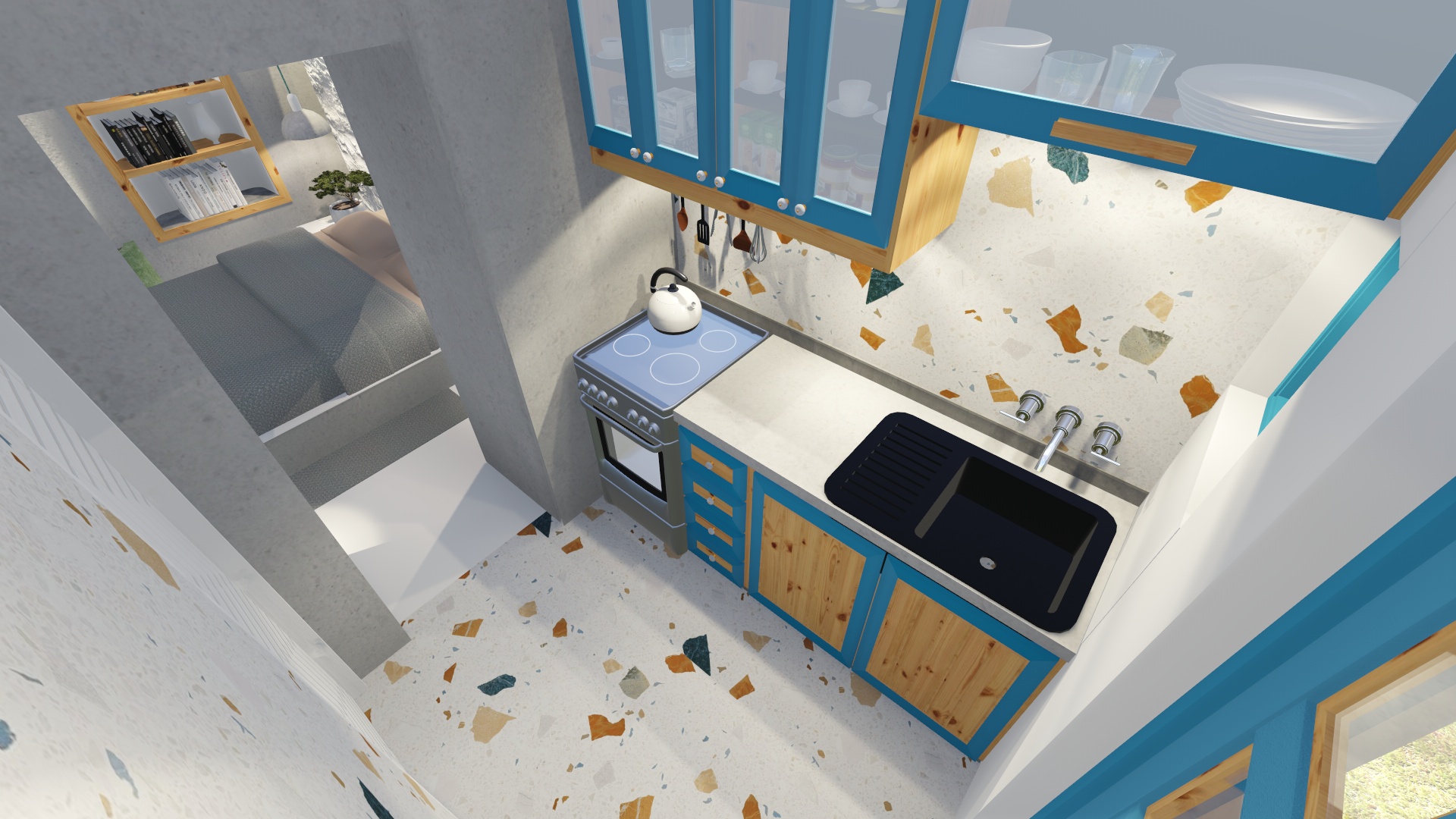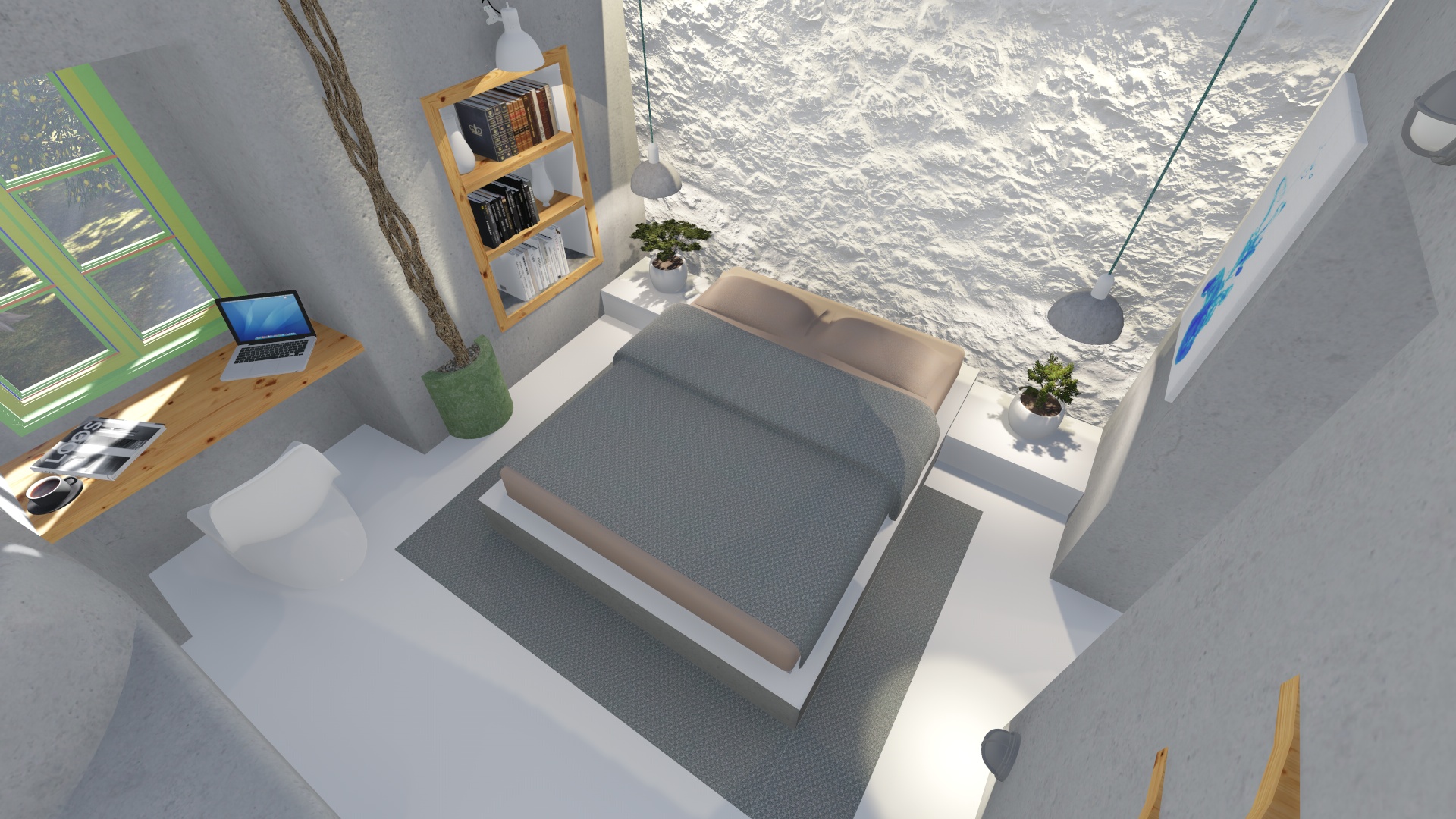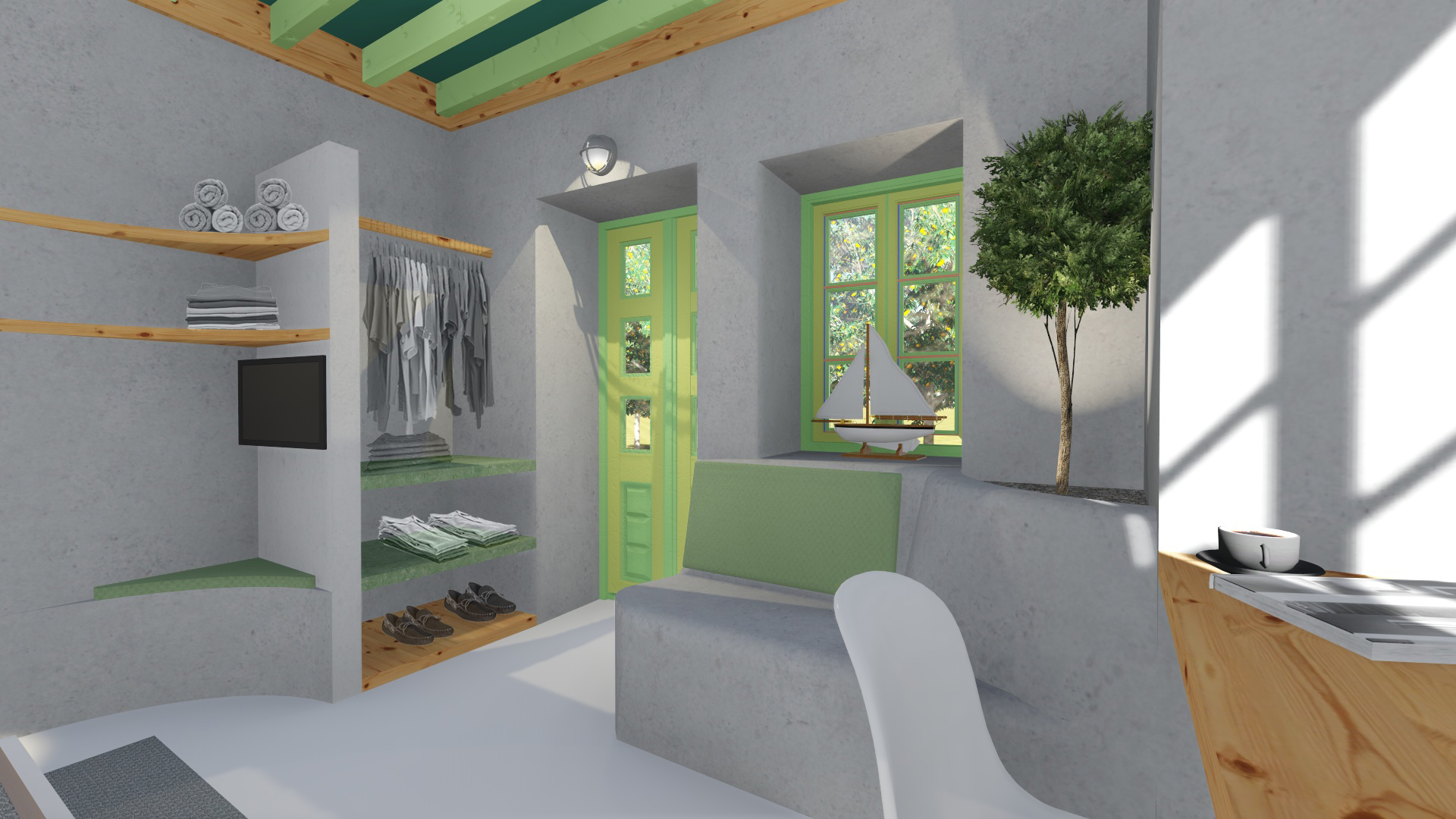 Στόχος ήταν αφενός να αναδειχθεί μέρος του παραδοσιακού χαρακτήρα της Λέρου, και αφετέρου να συνδυαστεί με το φυσικό στοιχείο όσο το δυνατόν περισσότερο. Το κάθε δωμάτιο είναι της τάξεως των 18 τετ. μέτρων και περιλαμβάνει κουζίνα μπάνιο και το δωμάτιο με το διπλό κρεβάτι, αποθηκευτικούς χώρους, καθιστικό καθώς και γραφείο.